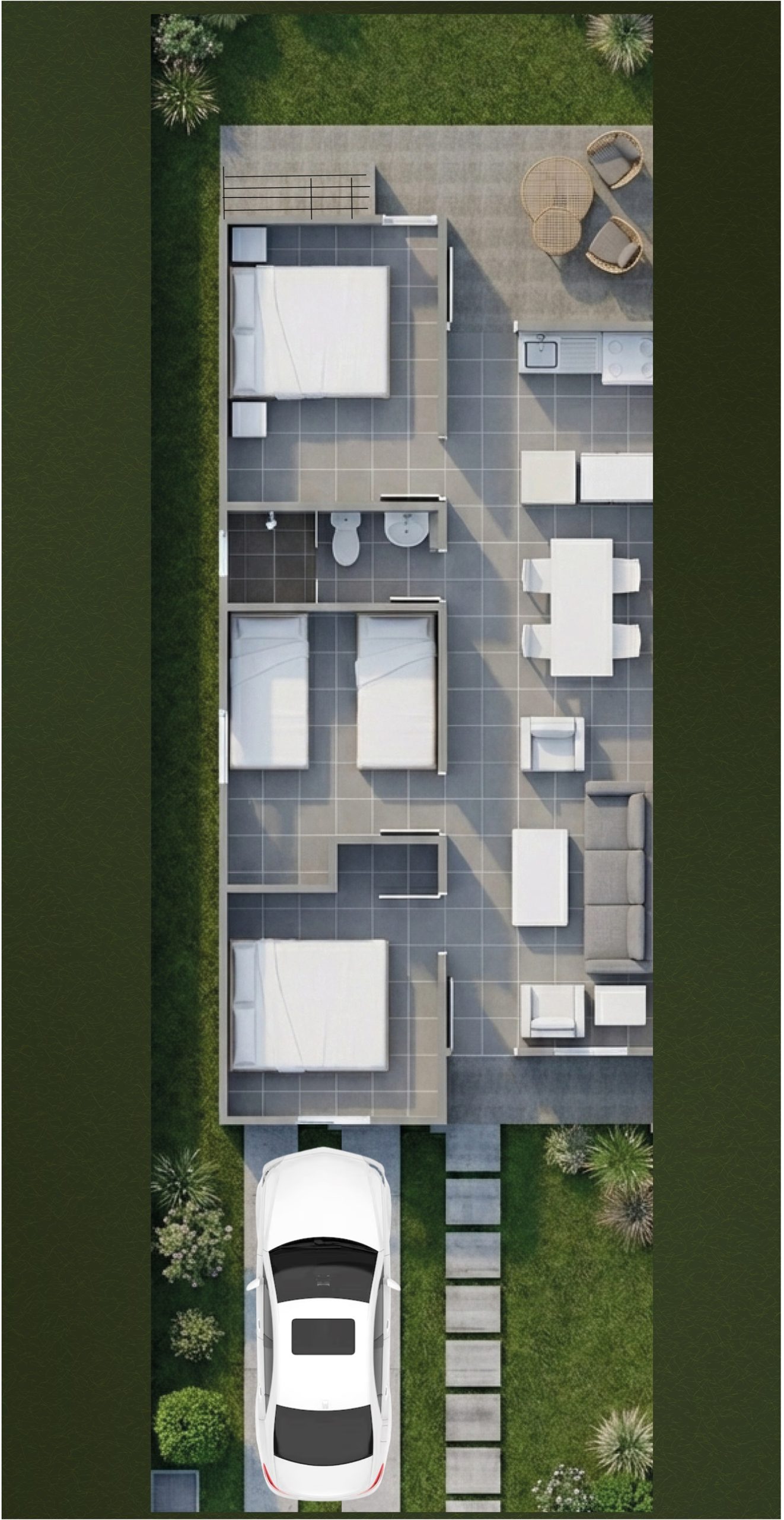 En este modelo encontrarás 3 recámaras, 1 baño, sala/comedor, cocina abierta, lavandería, terraza, estacionamiento techado. Perfecta para parejas y familias que buscan espacios cálidos y cómodos.